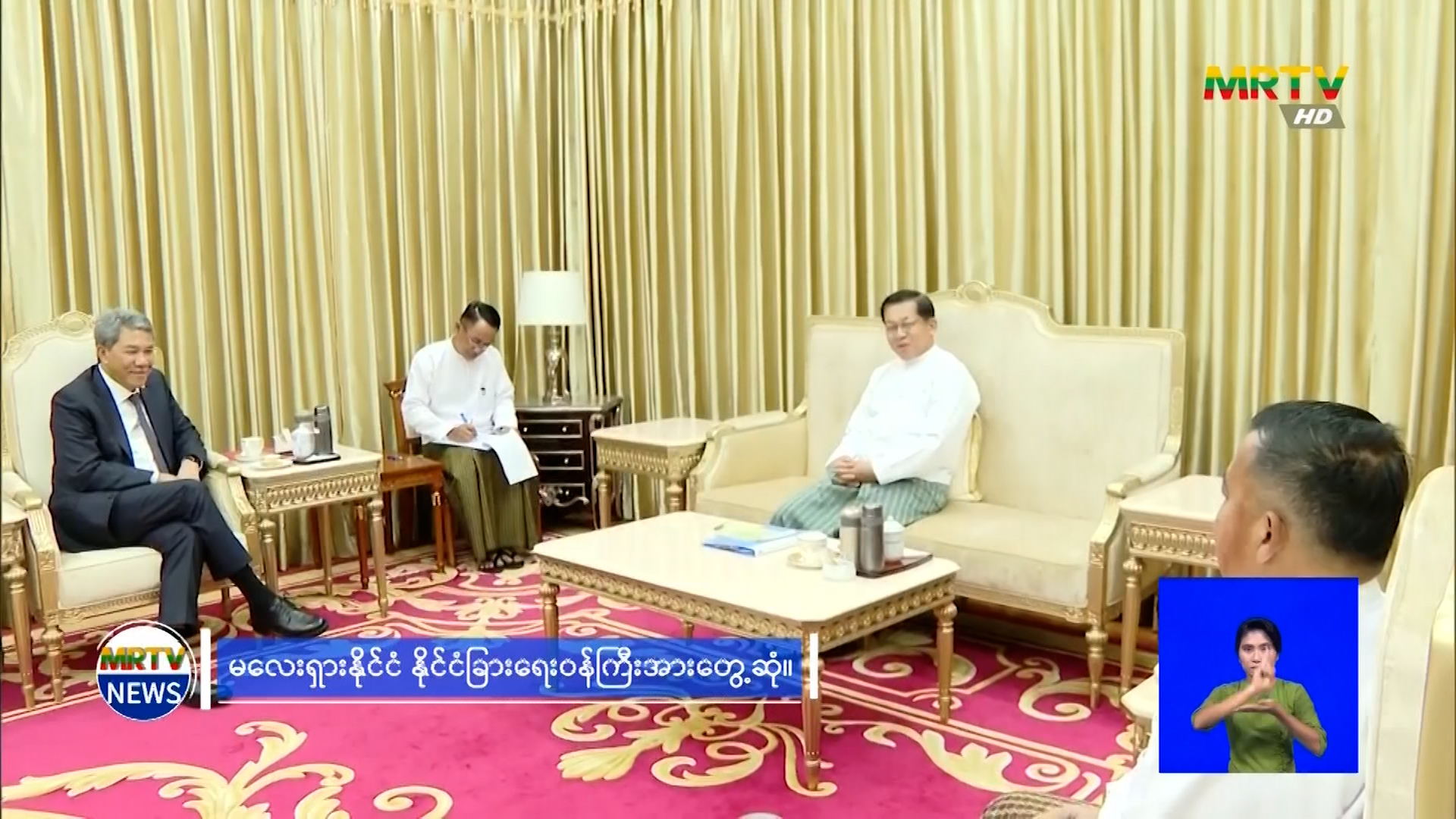 ပြည်ထောင်စုသမ္မတ မြန်မာနိုင်ငံတော်ယာယီသမ္မတ နိုင်ငံတော်လုံခြုံရေးနှင့် အေးချမ်းသာယာရေးကော်မရှင်ဥက္ကဋ္ဌ ဗိုလ်ချုပ်မှူးကြီး မင်းအောင်လှိုင် မလေးရှားနိုင်ငံ နိုင်ငံခြားရေးဝန်ကြီးအား တွေ့ဆုံ Thursday, October 09, 2025