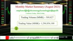 ဩဂုတ်လအတွင်း ရန်ကုန်စတော့အိတ်ချိန်းမှာ ရှယ်ယာ အစောင်ရေ (၅၀၉၈၂၇)စောင် အရောင်းအဝယ် ဖြစ်