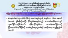 ဝဘာသာ“COVID-19 ရောဂါကာကွယ်ထိန်းချုပ်ရေးအတွက် ပါးစပ်နှင့်နှာခေါင်းစည်း(Mask) အမျိုးမျိုးအသုံးပြုခြင်းနှင့် ပတ်သက်၍အမေးများ သောမေးခွန်းနှင့်အဖြေများ”