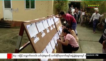 ၂၀၂၅ ခုနှစ် အထွေထွေရွေးကောက်ပွဲအတွက် မြောက်ဥက္ကလာပ မြို့နယ်အတွင်းရှိ သက်ဆိုင်ရာကော်မရှင် အဖွဲ့ခွဲရုံးများတွင် ကပ်ထားသော မဲစာရင်းများအား ပြည်သူများ လာရောက် ကြည့်ရှုလျက်ရှိ