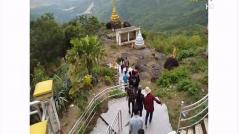 မွန်ပြည်နယ်၊ ပေါင်မြို့နယ်ရှိ ဆံတော်ရှင်ဆုတောင်းပြည့် ဗန္ဓသေလာစေတီမြတ်တွင် သင်္ကြန်ကာလအတွင်း ဘုရားဖူးပြည်သူများ ကုသိုလ်ပြု