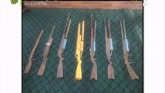 လက်လုပ်သေနတ်များနှင့် ဆူပူအကြမ်းဖက်ရာတွင် အသုံးပြုသည့် ဆက်စပ်ပစ္စည်းများအား လုံခြုံရေးတပ်ဖွဲ့ဝင်များထံသို့ လာရောက်အပ်နှံ (မြန်အောင်၊ ရမည်းသင်းမြို့)