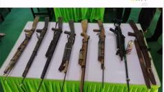 တူမီးသေနတ်၊ လက်လုပ်သေနတ်များနှင့် ဆူပူအကြမ်းဖက်ရာတွင် အသုံးပြုသည့် ဆက်စပ်ပစ္စည်းများအား လုံခြုံရေးတပ်ဖွဲ့ဝင်များထံသို့ လာရောက်အပ်နှံ(နေပြည်တော်၊ ကရင်ပြည်နယ်၊ တနင်္သာရီတိုင်းဒေသကြီး၊ ဧရာဝတီတိုင်းဒေသကြီး၊ ပဲခူးတိုင်းဒေသကြီး)