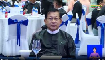 ပြည်ထောင်စုသမ္မတမြန်မာနိုင်ငံတော် ယာယီသမ္မတ နိုင်ငံတော်လုံခြုံရေးနှင့် အေးချမ်းသာယာရေးကော်မရှင် ဥက္ကဋ္ဌ ဗိုလ်ချုပ်မှူးကြီး မင်းအောင်လှိုင် မန္တလေးတက္ကသိုလ် နှစ်(၁၀၀)ပြည့် ရာပြည့်သဘင်အထိမ်းအမှတ် ဂုဏ်ပြုညစာစားပွဲ အခမ်းအနားသို့ တက်ရောက်