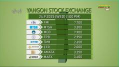 Yangon Stock Exchange ဈေးကွက် အခြေအနေ(၂၄-၉-၂၀၂၅)