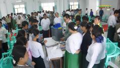 ပြည်ထောင်စုရွေးကောက်ပွဲကော်မရှင် အဖွဲ့ဝင် ဦးခင်ဇော် မြန်မာအီလက်ထရောနစ် မဲပေးစက် ကိုင်တွယ်အသုံးပြုနည်း သင်တန်းသား/သင်တန်းသူများ၊ ခရိုင်နှင့်မြို့နယ် ရွေးကောက်ပွဲကော်မရှင် အဖွဲ့ခွဲဥက္ကဋ္ဌနှင့် အဖွဲ့ဝင်များ၊ နိုင်ငံရေးပါတီများနှင့် တွေ့ဆုံ