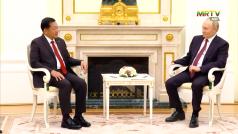 ပြည်ထောင်စုသမ္မတမြန်မာနိုင်ငံတော် ယာယီသမ္မတ နိုင်ငံတော်လုံခြုံရေးနှင့် အေးချမ်းသာယာရေးကော်မရှင်ဥက္ကဋ္ဌ ဗိုလ်ချုပ်မှူးကြီး မင်းအောင်လှိုင် ရုရှားဖက်ဒရေးရှင်းနိုင်ငံသမ္မတ Vladimir Vladimirovich Putin နှင့် တွေ့ဆုံဆွေးနွေး
