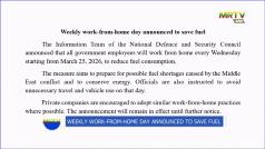 Weekly work-from-home day announced to save fuel
