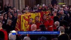 Q. Elizabeth II's coffin enters St George's Chapel