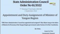 Appointment of Yangon Region Minister