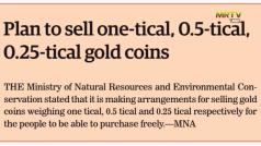 Plan to sell one-tical, 0.5-tical, 0.25-tical gold coins