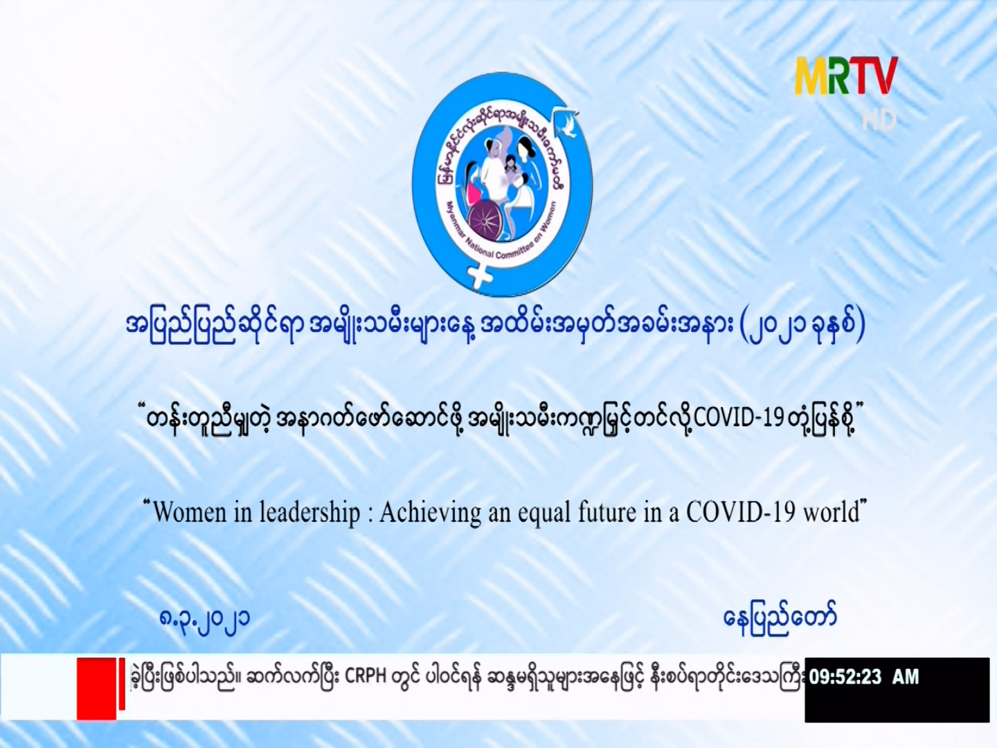 အပြည်ပြည်ဆိုင်ရာ အမျိုးသမီးများနေ့ အထိမ်းအမှတ်အခမ်းအနား “တန်းတူညီမျှတဲ့ အနာဂတ်ဖော်ဆောင်ဖို့ အမျိုးသမီးကဏ္ဍမြှင့်တင်လို့ COVID-19 တုံ့ပြန်စို့ (Women in leadership : Achieving an equal future in a COVID-19 World)” (၈-၃-၂၀၂၁) Thursday, March 04, 2021 Thursday, March 04, 2021