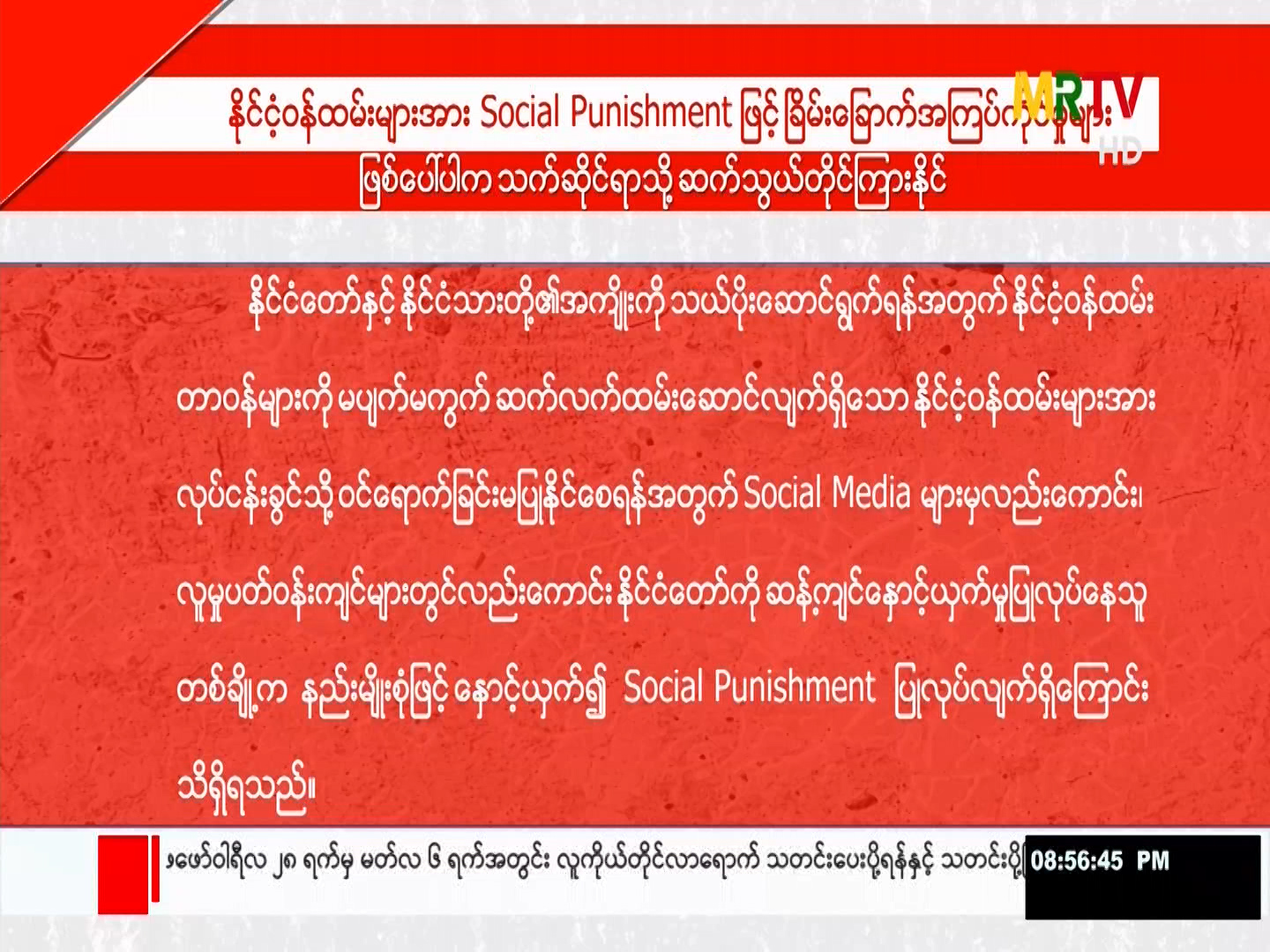 နိုင်ငံ့ဝန်ထမ်းများအား Social Punishment ဖြင့် ခြိမ်းခြောက်အကြပ်ကိုင်မှုများ ဖြစ်ပေါ်ပါက သက်ဆိုင်ရာသို့ ဆက်သွယ်တိုင်ကြားနိုင် Thursday, March 04, 2021 Thursday, March 04, 2021