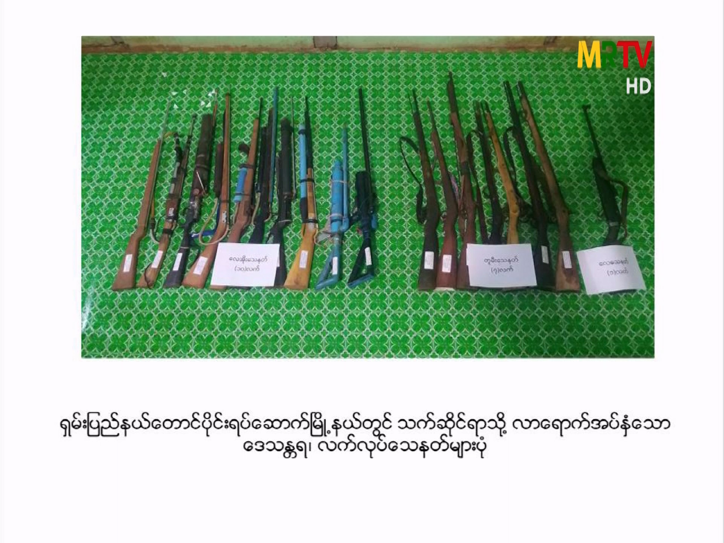 ရှမ်းပြည်နယ်၊ တောင်ပိုင်း၊ ရပ်စောက်မြို့နယ်၊ ရန်ကုန်တိုင်းဒေသကြီး၊ အင်းစိန်မြို့နယ်တို့တွင် လက်လုပ်သေနတ်များ၊ ဒူးလေးနှင့် ဆူပူအကြမ်းဖက်ရာတွင် အသုံးပြုသည့်ဆက်စပ်ပစ္စည်းများအား လုံခြုံရေးတပ်ဖွဲ့ဝင်များထံသို့ လာရောက်အပ်နှံ Thursday, April 01, 2021 Thursday, April 01, 2021