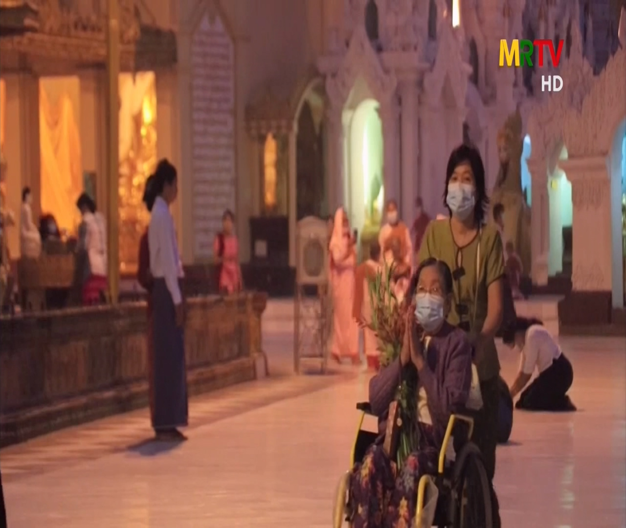 ရွှေတိဂုံစေတီတော်မြတ်ကြီး အပါအဝင် ပြည်နယ်နှင့်တိုင်းဒေသကြီး အသီးသီးရှိ ဘုရား၊ စေတီပုထိုးများ၊ အခြားဘာသာရေးကျောင်းများ၌ အများပြည်သူများ စိတ်အေးချမ်းသာစွာ လာရောက် ဝတ်ပြုကြည်ညိုလျက်ရှိ၊ ဈေးများ၊ ဆေးရုံများနှင့် ယာဉ်လိုင်းများ ပုံမှန်အတိုင်း ပြန်လည်ဖွင့်လှစ်ပ Sunday, April 04, 2021 Sunday, April 04, 2021