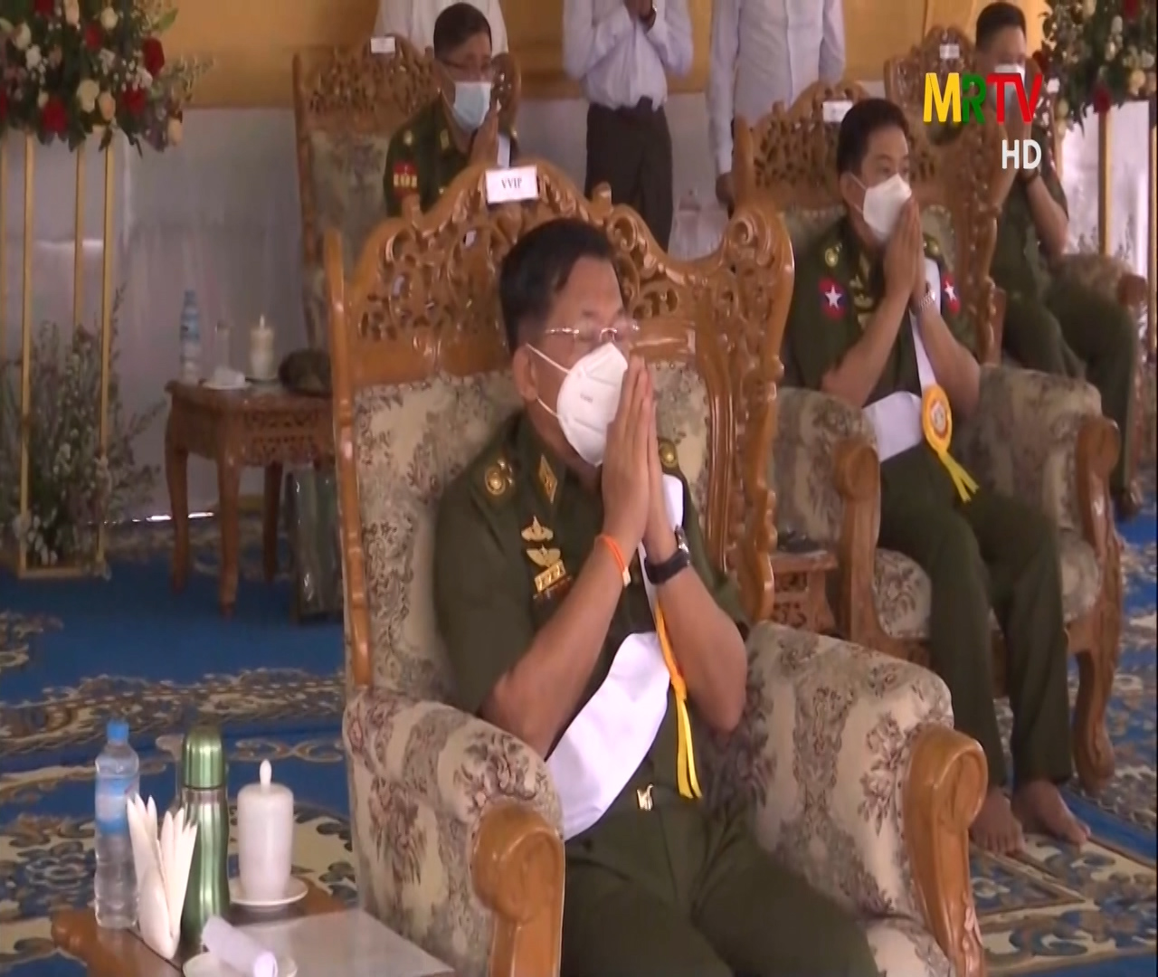 နိုင်ငံတော်စီမံအုပ်ချုပ်ရေးကောင်စီ ဥက္ကဋ္ဌ၊ တပ်မတော်ကာကွယ်ရေးဦးစီးချုပ် ဗိုလ်ချုပ်မှူးကြီး မင်းအောင်လှိုင် ဘူမိဖဿမုဒြာ ထိုင်တော်မူ ကျောက်ဆစ်ဗုဒ္ဓရုပ်ပွားတော်မြတ်ကြီး၏ ဆင်းတုတော် အပိုင်း(၁)အား ဆီမီးခုံဆိပ်ကမ်းမှ နေပြည်တော်သို့ ပင့်ဆောင်ပူဇော်ခြင်း အခမ်းအနားသို့ တက်ရောက်