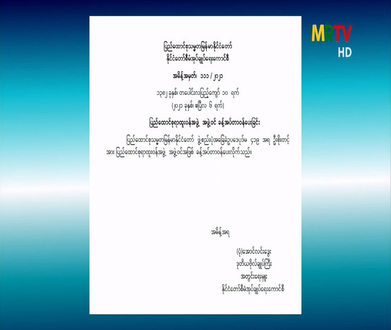 နိုင်ငံတော်စီမံအုပ်ချုပ်ရေးကောင်စီမှ အမိန့်အမှတ် (၁၁၁/၂၀၂၁) အား ယနေ့ရက်စွဲဖြင့် ထုတ်ပြန်