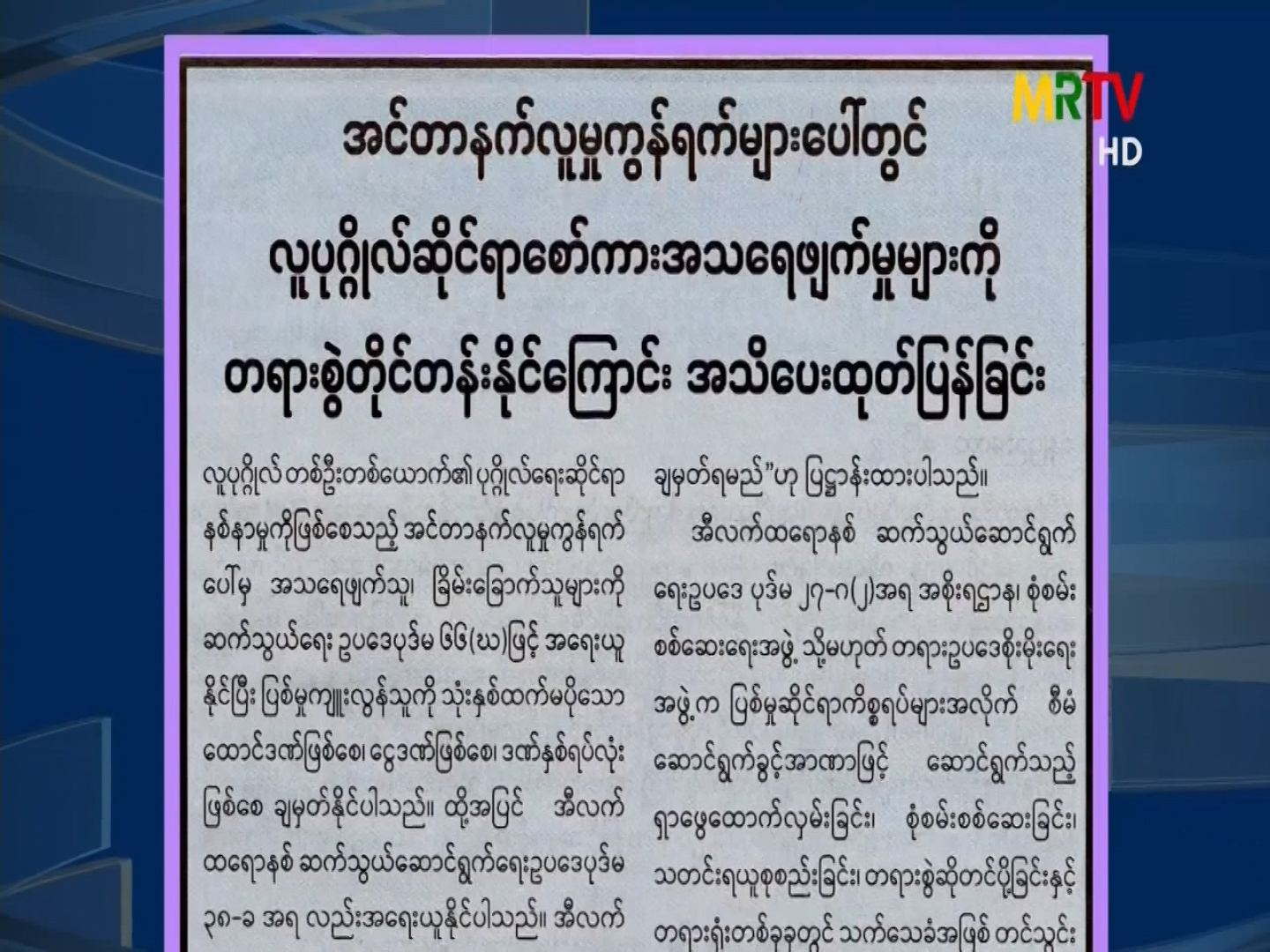 အင်တာနက်လူမှုကွန်ရက်များပေါ်တွင် လူပုဂ္ဂိုလ်ဆိုင်ရာ စော်ကားအသရေဖျက်မှုများကိုတရားစွဲတိုင်တန်းနိုင်ကြောင်း အသိပေးထုတ်ပြန်ခြင်း Saturday, April 10, 2021 Saturday, April 10, 2021