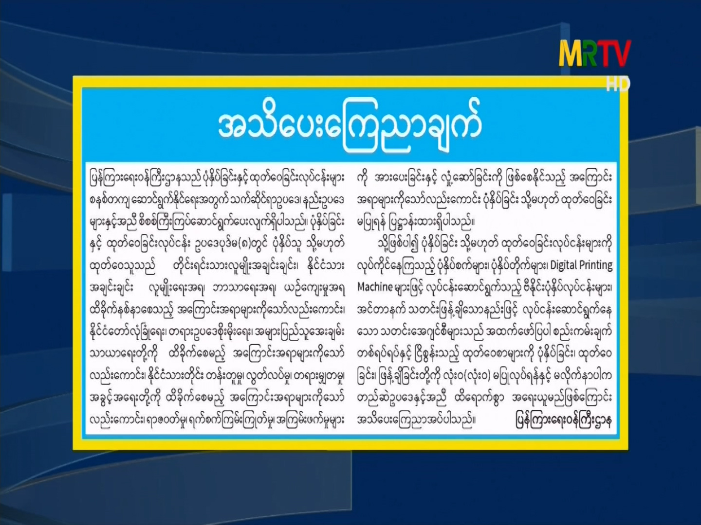 Hluttaw Channel Schedule
