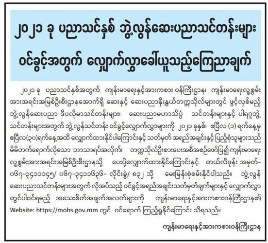 ၂၀၂၁ခု၊ ပညာသင်နှစ် ဘွဲ့လွန်ဆေးပညာဝင်ခွင့်အတွက် လျှောက်လွှာခေါ်ယူသည့် ကြေညာချက် Monday, April 12, 2021 Monday, April 12, 2021