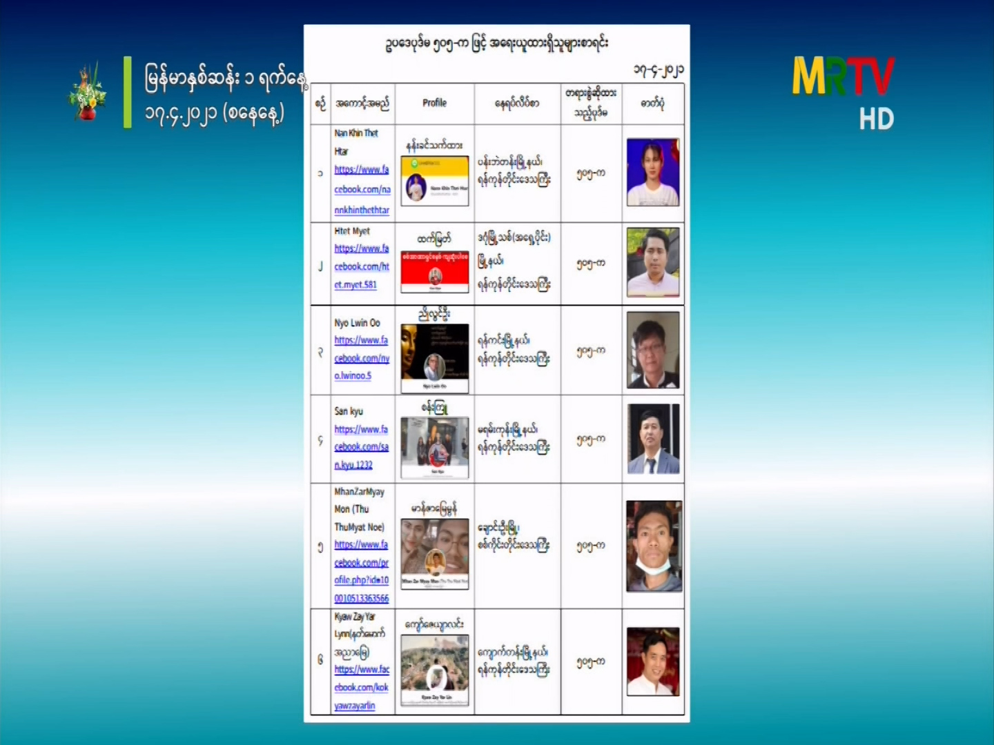 လူမှုကွန်ရက်အသုံးပြု၍ နိုင်ငံတော် တည်ငြိမ်အေးချမ်းမှုကို ပျက်ပြားစေရန် ရည်ရွယ်ချက်ဖြင့် လှုံ့ဆော်သူများအား ရာဇသတ်ကြီး ပုဒ်မ ၅၀၅-က ဖြင့် အမှုဖွင့် အရေးယူဆောင်ရွက် Saturday, April 17, 2021 Saturday, April 17, 2021