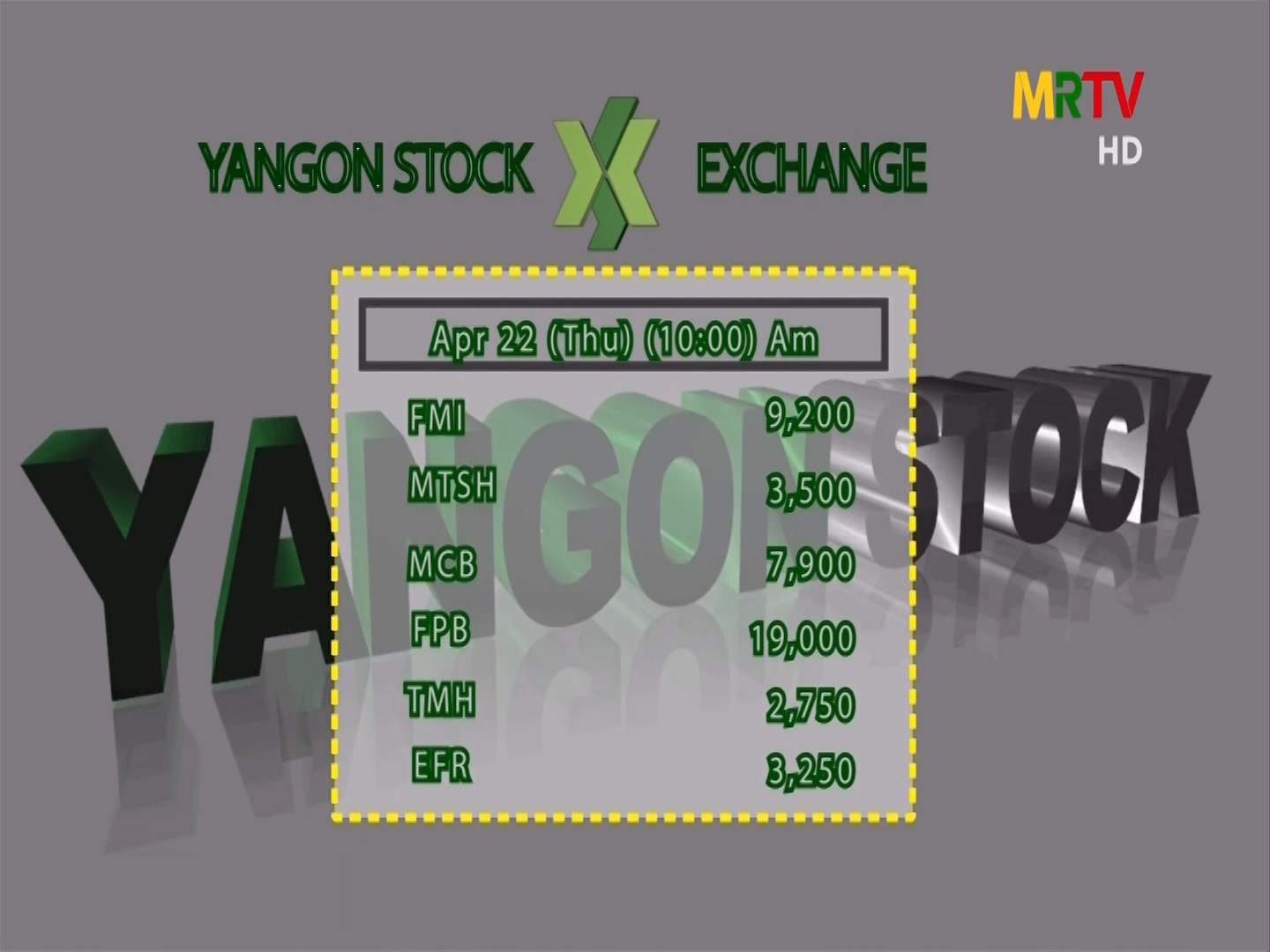 ရန်ကုန်မြို့ Stock Exchange ဈေးကွက် အခြေအနေ