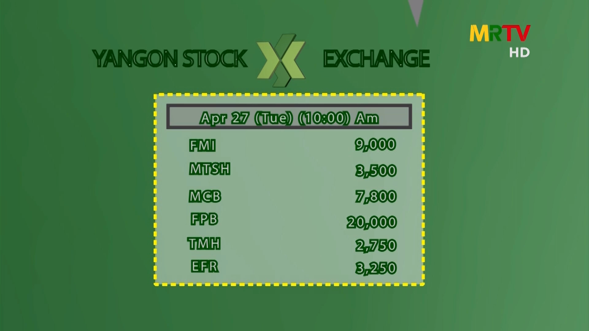ရန်ကုန် Stock Exchange ဈေးကွက်အခြေအနေ(၂၇-၄-၂၀၂၁)