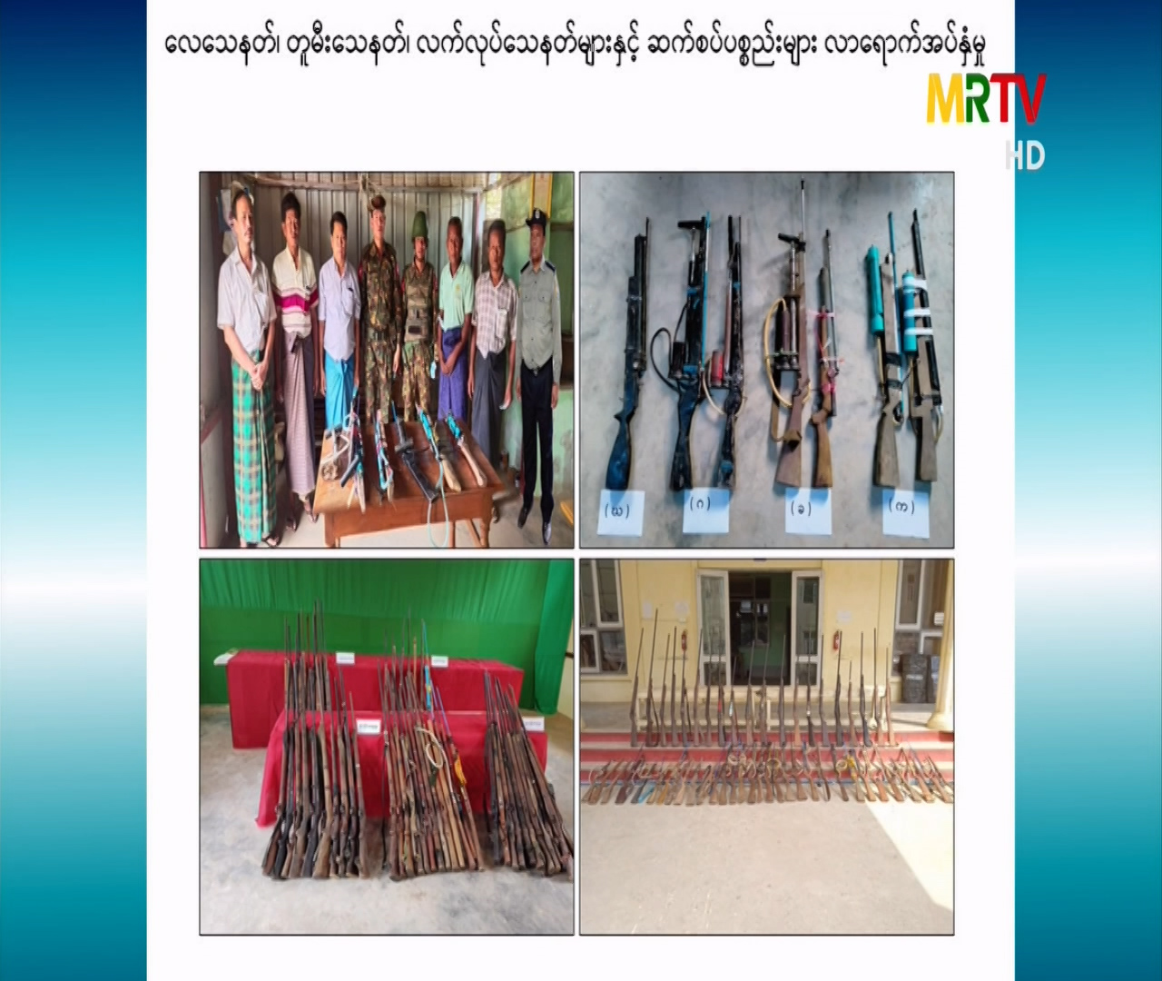တိုင်းဒေသကြီးနှင့် ပြည်နယ်အချို့တွင် လက်နက်ကိုင်ဆောင်လိုခြင်းမရှိသည့် ပြည်သူလူထုမှ လေသေနတ်၊ တူမီးသေနတ်၊ လက်လုပ်သေနတ်များနှင့် ဆက်စပ်ပစ္စည်းများအား အုပ်ချုပ်ရေးတာဝန်ရှိသူများမှတစ်ဆင့်လုံခြုံရေးတပ်ဖွဲ့ဝင်များထံလာရောက်အပ်နှံ Friday, April 30, 2021 Friday, April 30, 2021
