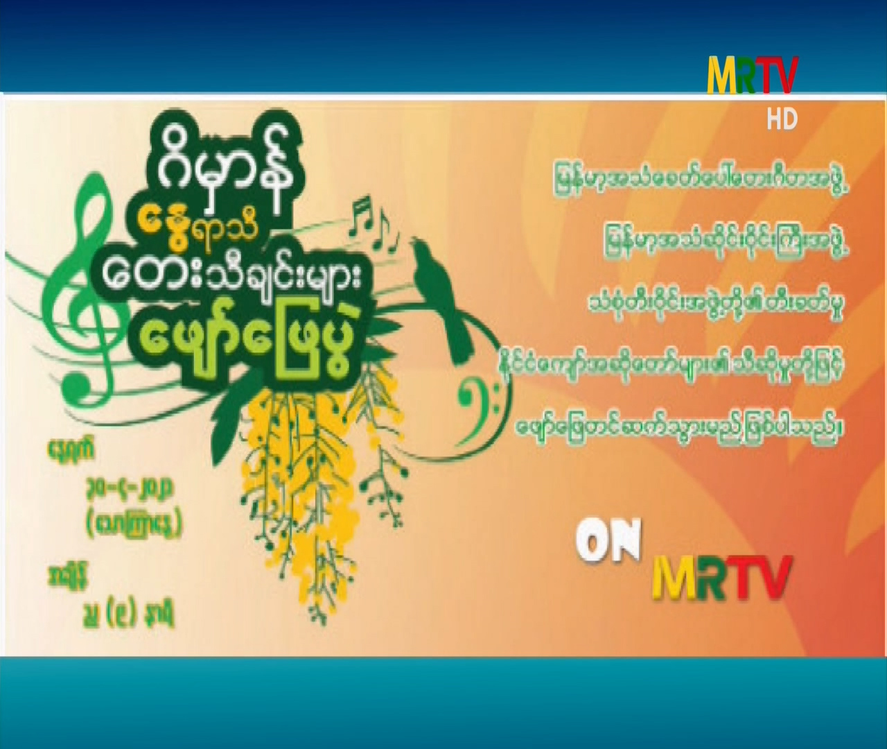 ဂိမှာန်နွေရာသီတေးသီချင်းများဖျော်ဖြေပွဲကို မြန်မာ့အသံနှင့်ရုပ်မြင်သံကြားတွင်ထုတ်လွှင့်ပြသမည် Friday, April 30, 2021 Friday, April 30, 2021