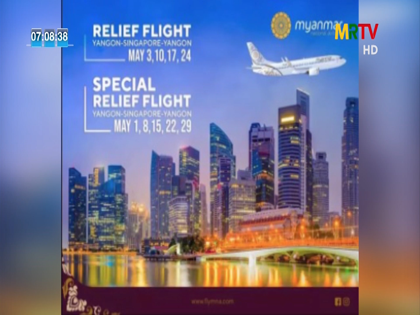 မြန်မာအမျိုးသားလေကြောင်းမှ ရန်ကုန်-စင်္ကာပူ-ရန်ကုန်သို့ မေလရဲ့ အပတ်စဉ်တနင်္လာနေ့နှင့်စနေနေ့တိုင်းတွင် ကူညီကယ်ဆယ်ရေးခရီးစဉ်များ ပျံသန်းပြေးဆွဲမည် Wednesday, May 05, 2021 Thursday, May 06, 2021