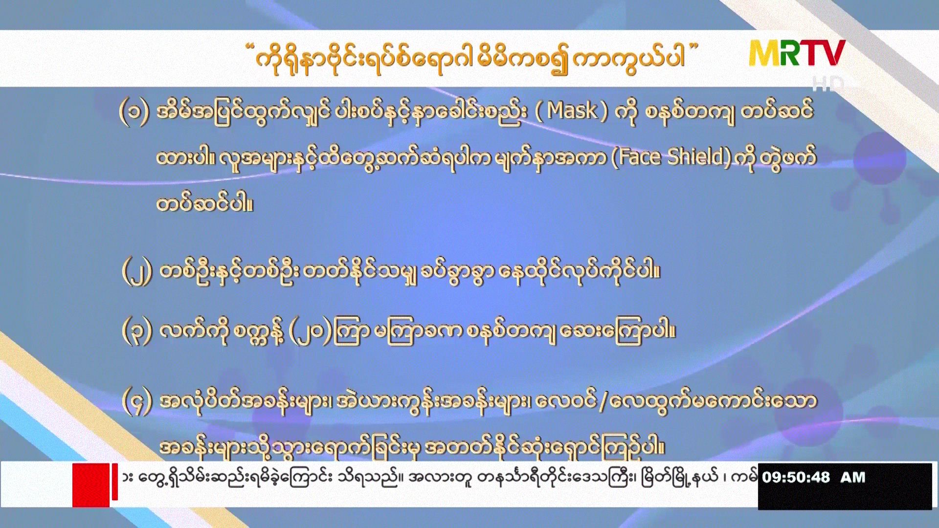 “ကိုရိုနာဗိုင်းရပ်စ်ရောဂါ မိမိကစ၍ ကာကွယ်ပါ”