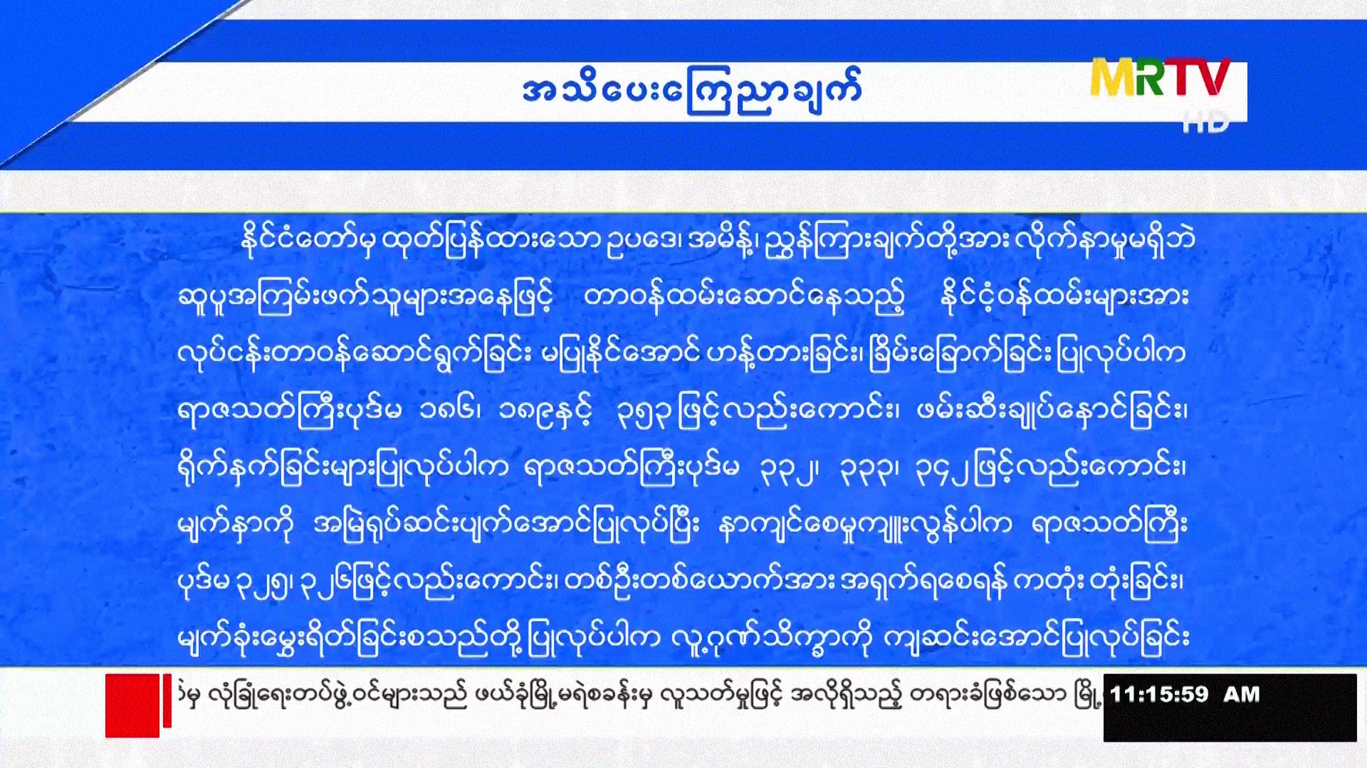 (၂၆) ကြိမ်မြောက် မြန်မာ့ရိုးရာယဉ်ကျေးမှု အဆို၊အက၊အရေး၊အတီး ပြိုင်ပွဲ ဖွင့်ပွဲအခမ်းအနားကို MRTV မှ တိုက်ရိုက်ထုတ်လွှင့်မည်