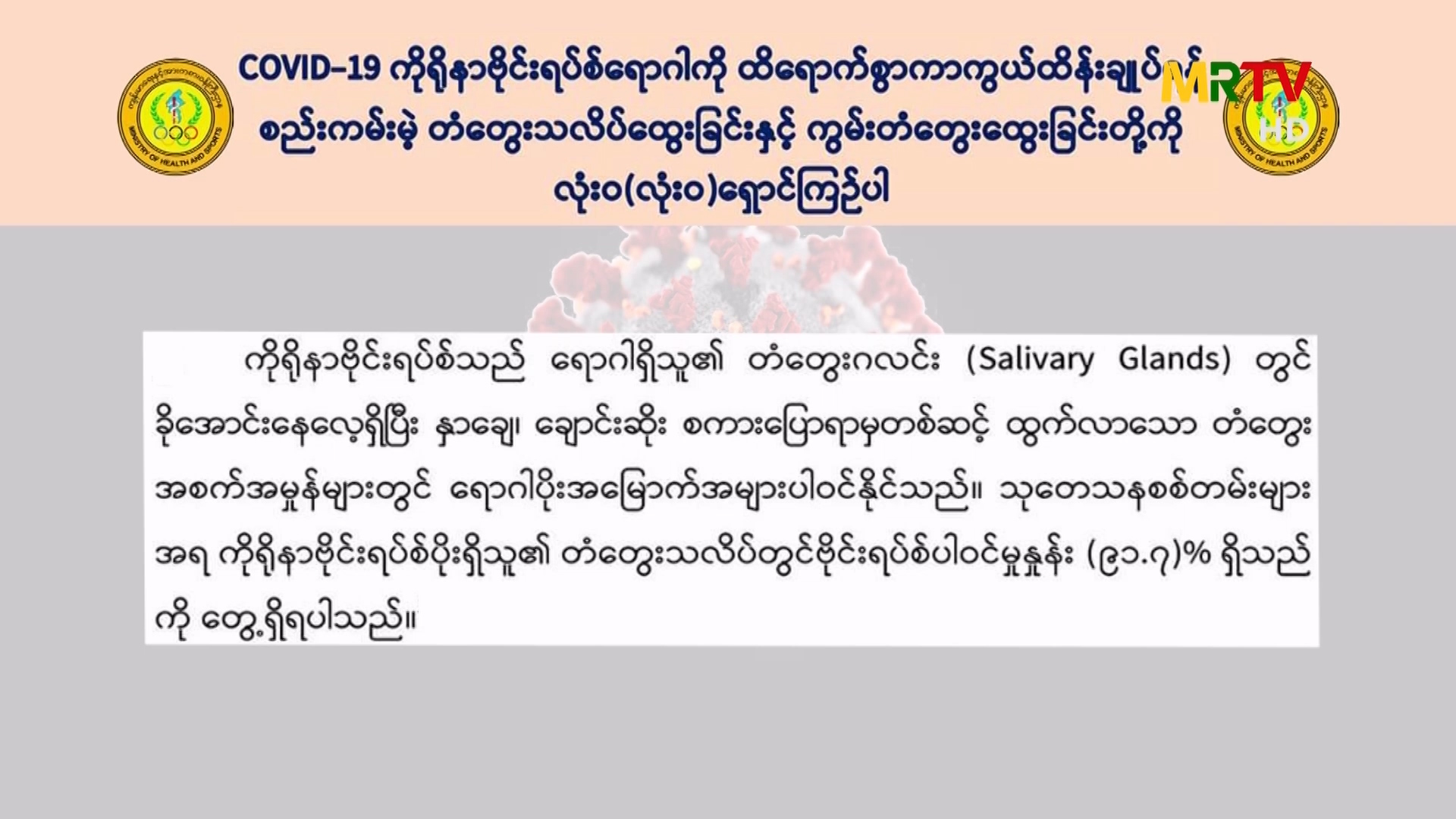COVID-19 ကိုရိုနာဗိုင်းရပ်စ်ရောဂါကို ထိရောက်စွာကာကွယ်ထိန်းချုပ်ရန် စည်းကမ်းမဲ့ တံတွေးသလိပ်ထွေးခြင်းနှင့် ကွမ်းတံတွေးထွေးခြင်းတို့ကို လုံးဝ(လုံးဝ)ရှောင်ကြဉ်ပါ Monday, May 24, 2021 Monday, May 24, 2021