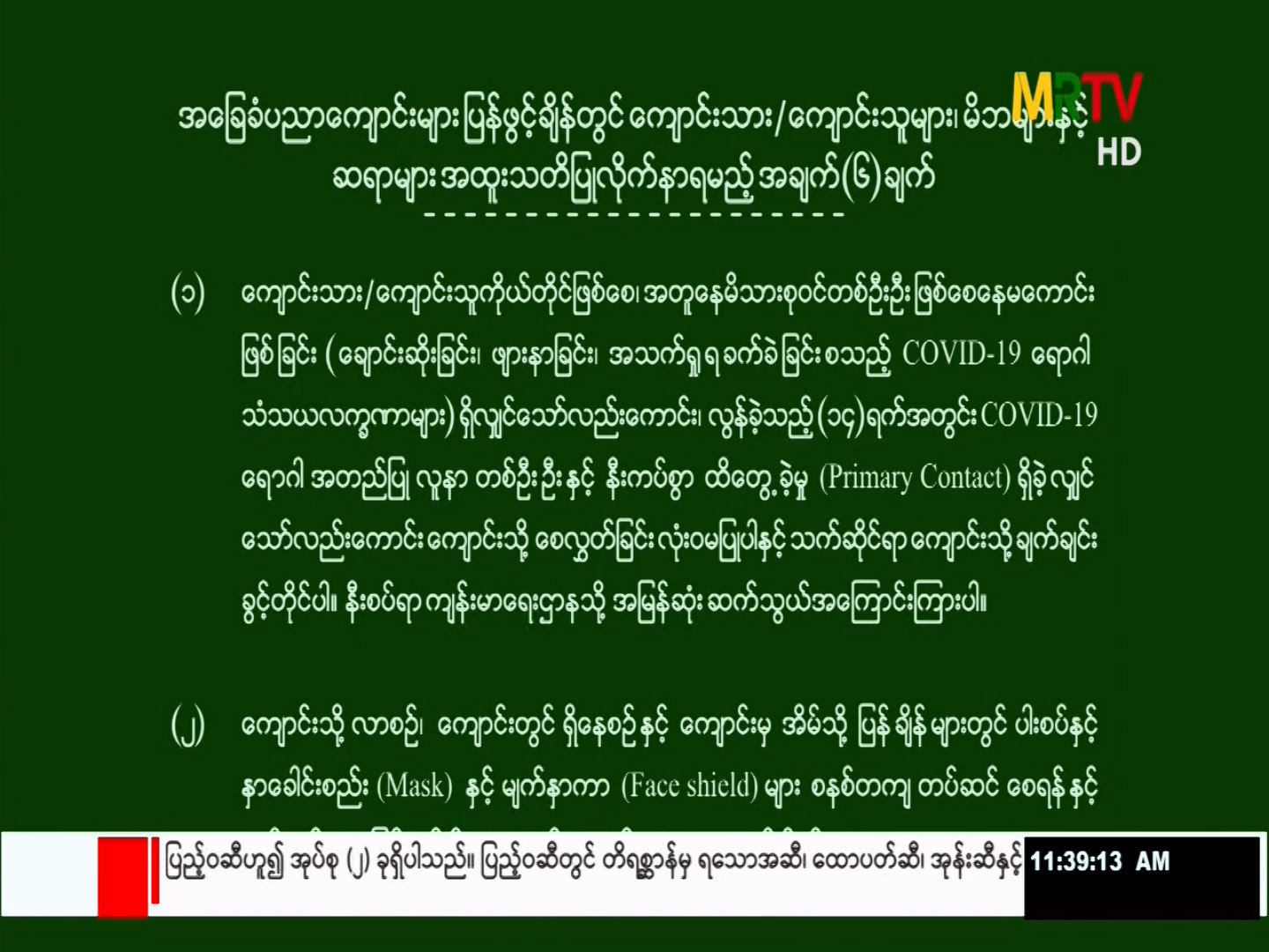 အခြေခံပညာကျောင်းများ ပြန်ဖွင့်ချိန်တွင် ကျောင်းသား/ကျောင်းသူများ၊ မိဘများနှင့် ဆရာများ အထူးသတိပြုလိုက်နာရမည့်အချက်(၆)ချက် Thursday, May 27, 2021 Thursday, May 27, 2021