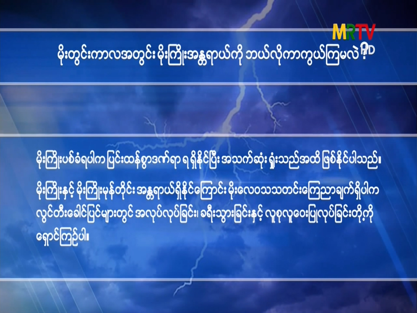 မိုးတွင်းကာလအတွင်း မိုးကြိုးအန္တရာယ်ကို ဘယ်လိုကာကွယ်ကြမလဲ? Friday, June 18, 2021 Friday, June 18, 2021