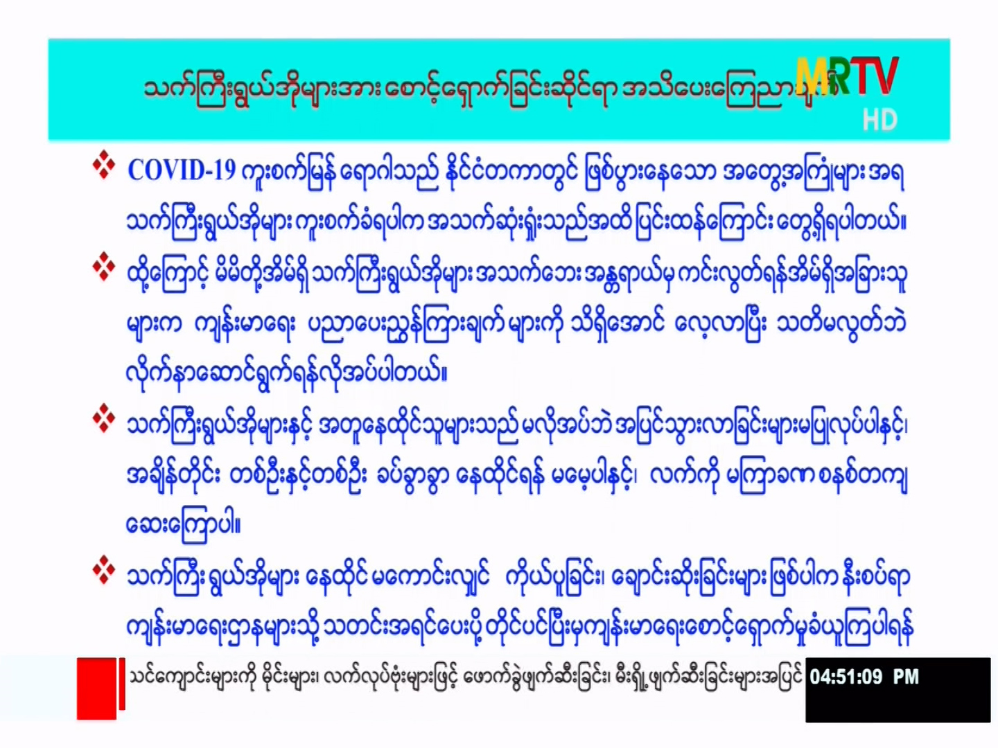 သက်ကြီးရွယ်အိုများအား စောင့်ရှောက်ခြင်းဆိုင်ရာ အသိပေးကြေညာချက် Friday, June 18, 2021 Friday, June 18, 2021