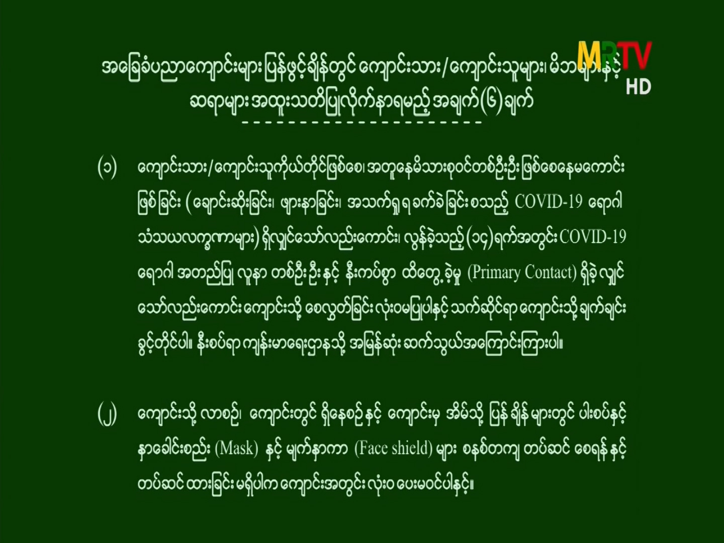 အခြေခံပညာကျောင်းများ ပြန်ဖွင့်ချိန်တွင် ကျောင်းသား/ကျောင်းသူများ မိဘများနှင့် ဆရာများ အထူးသတိပြုလိုက်နာရမည့် အချက် (၆)ချက် Friday, July 02, 2021 Friday, July 02, 2021