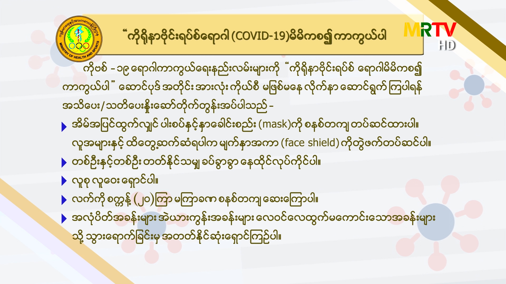 ကိုရိုနာဗိုင်းရပ်စ်ရောဂါ (COVID-19) မိမိကစ၍ ကာကွယ်ပါ