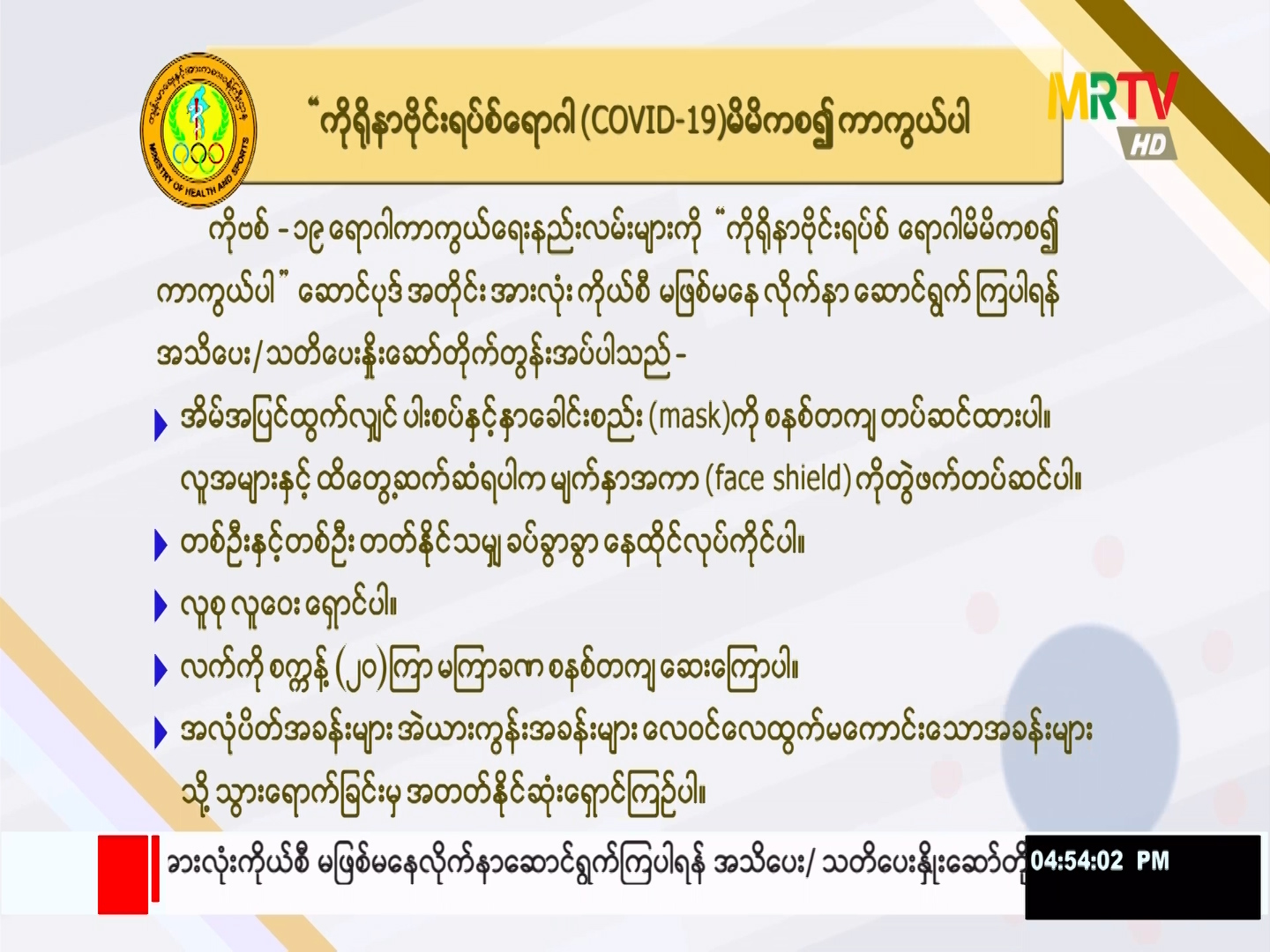 “ကိုရိုနာဗိုင်းရပ်စ်ရောဂါ(COVID-19)မိမိကစ၍ကာကွယ်ပါ” Wednesday, July 14, 2021 Wednesday, July 14, 2021