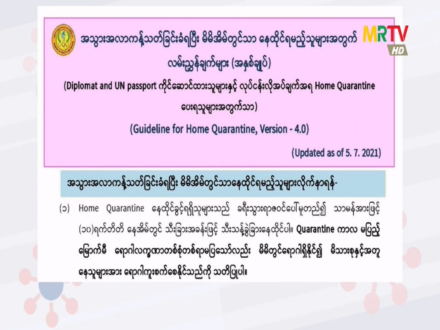 အသွားအလာကန့်သတ်ခြင်းခံရပြီး မိမိအိမ်တွင်သာ နေထိုင်ရမည့်သူများအတွက် လမ်းညွှန်ချက်များ (အနှစ်ချုပ်) Monday, August 02, 2021 Monday, August 02, 2021