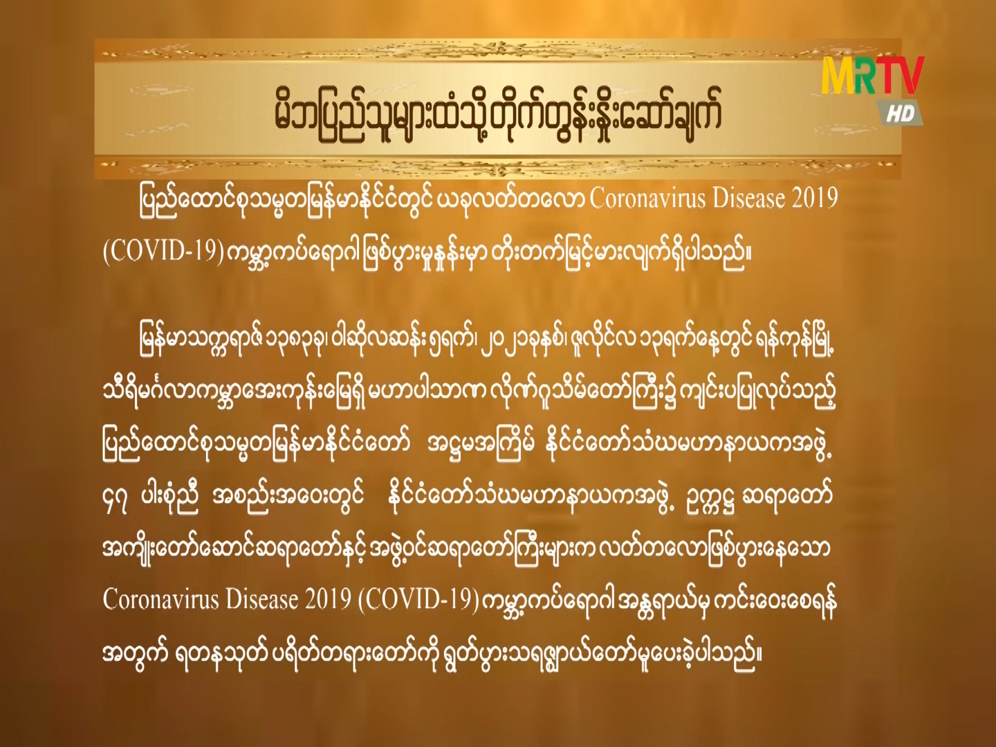 သီတင်းကျွတ်လပြည့်နေ့ အခါသမယတွင် ပြည်သူအပေါင်း အေးချမ်းသာယာရှိကြပါစေကြောင်း MRTV…