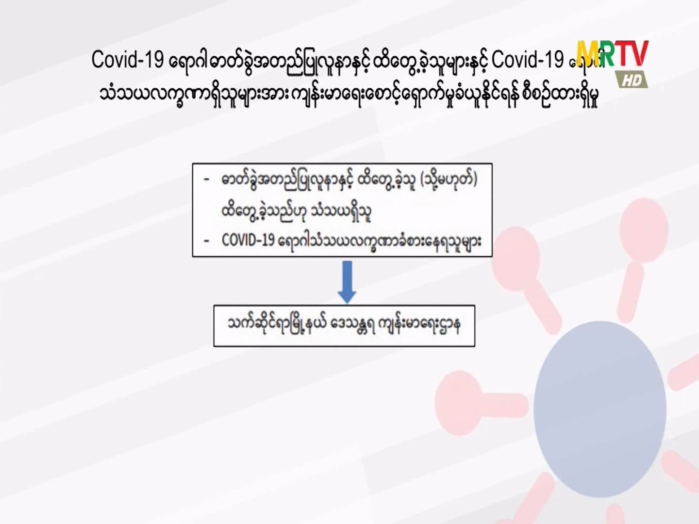 Covid-19 ရောဂါဓာတ်ခွဲအတည်ပြုလူနာနှင့် ထိတွေ့ခဲ့သူများနှင့် Covid-19 ရောဂါ သံသယလက္ခဏာရှိသူများအား ကျန်းမာရေးစောင့်ရှောက်မှုခံယူနိုင်ရန် စီစဉ်ထားရှိမှု Monday, August 30, 2021 Monday, August 30, 2021