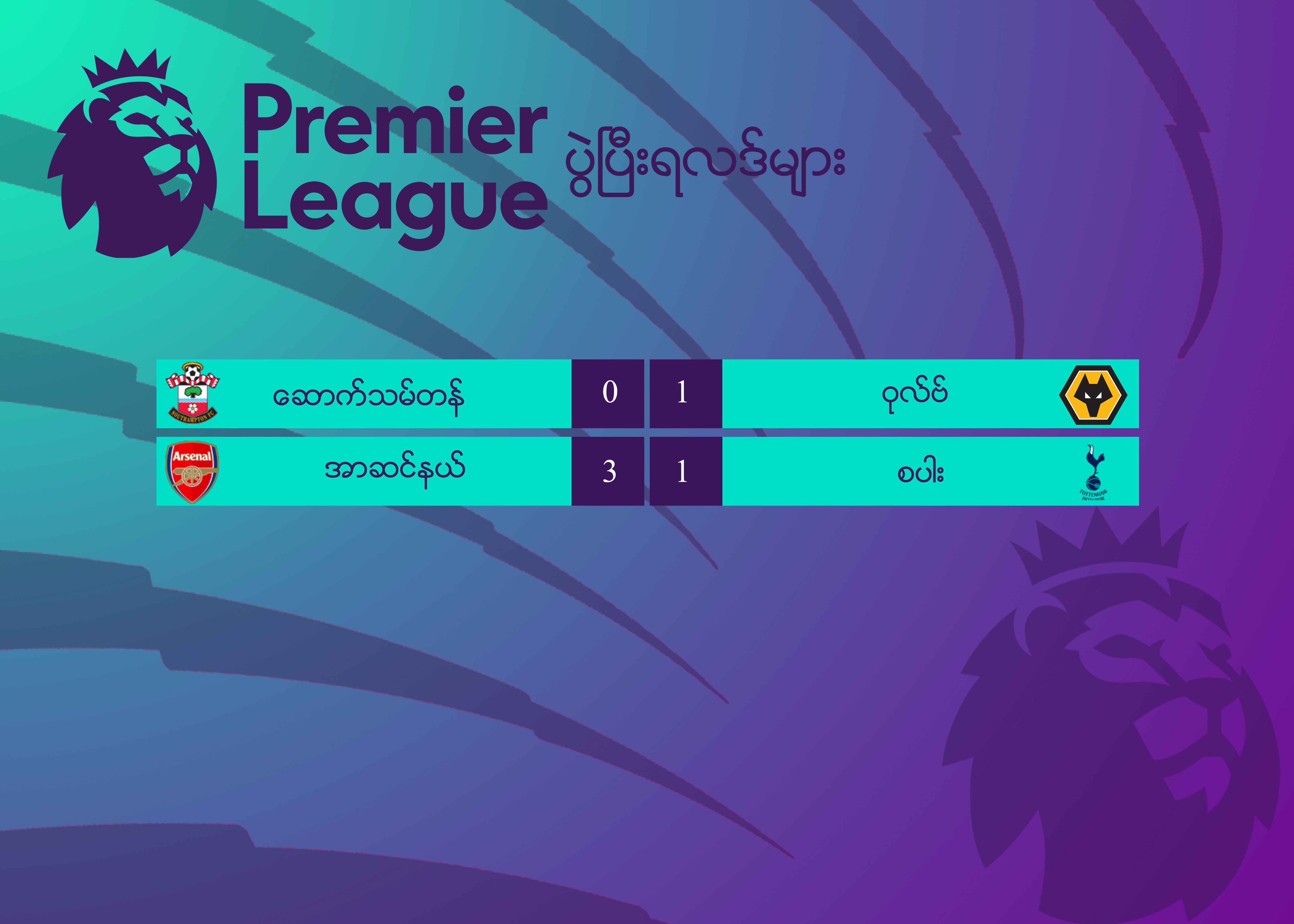 Premier League ပွဲစဉ်(၆) ပွဲပြီးရလဒ်များ