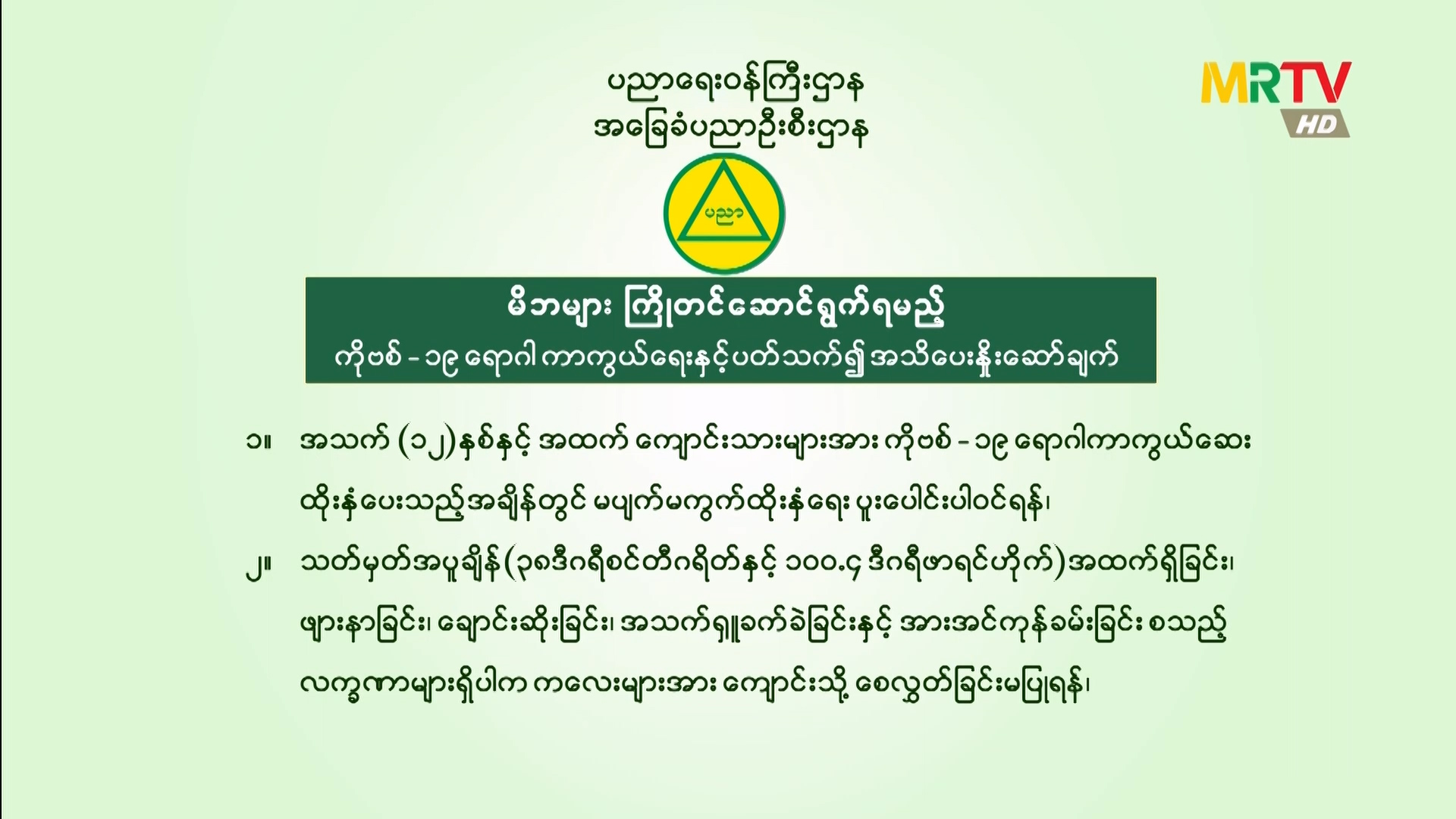 မိဘများ ကြိုတင်ဆောင်ရွက်ရမည့် ကိုဗစ်-19 ရောဂါ ကာကွယ်ရေးနှင့်ပတ်သက်၍ အသိပေးနှိုးဆော်ချက် Saturday, October 23, 2021 Saturday, October 23, 2021