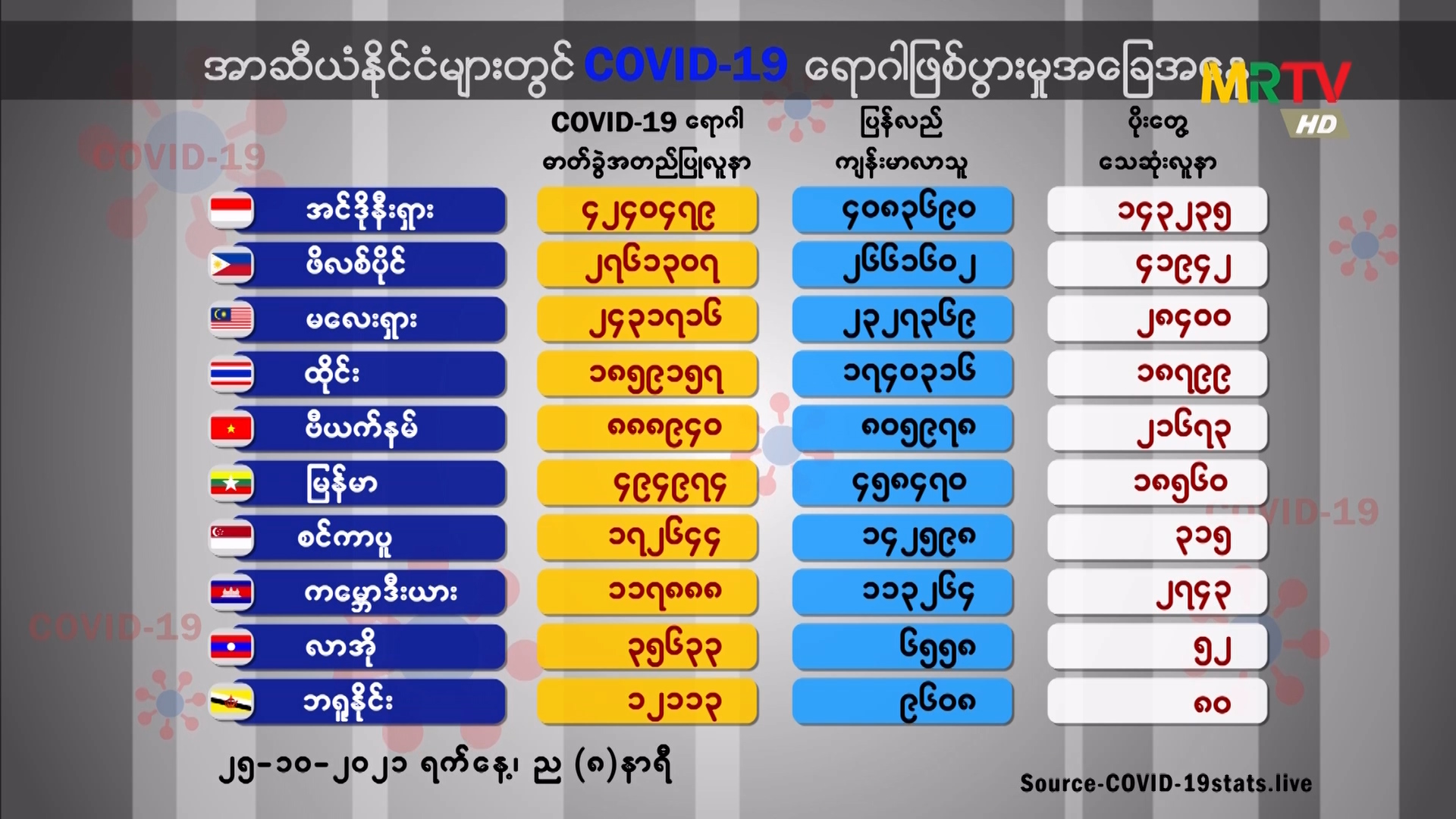အာဆီယံနိုင်ငံများတွင် COVID-19 ရောဂါဖြစ်ပွားမှုအခြေအနေ Tuesday, October 26, 2021 Tuesday, October 26, 2021