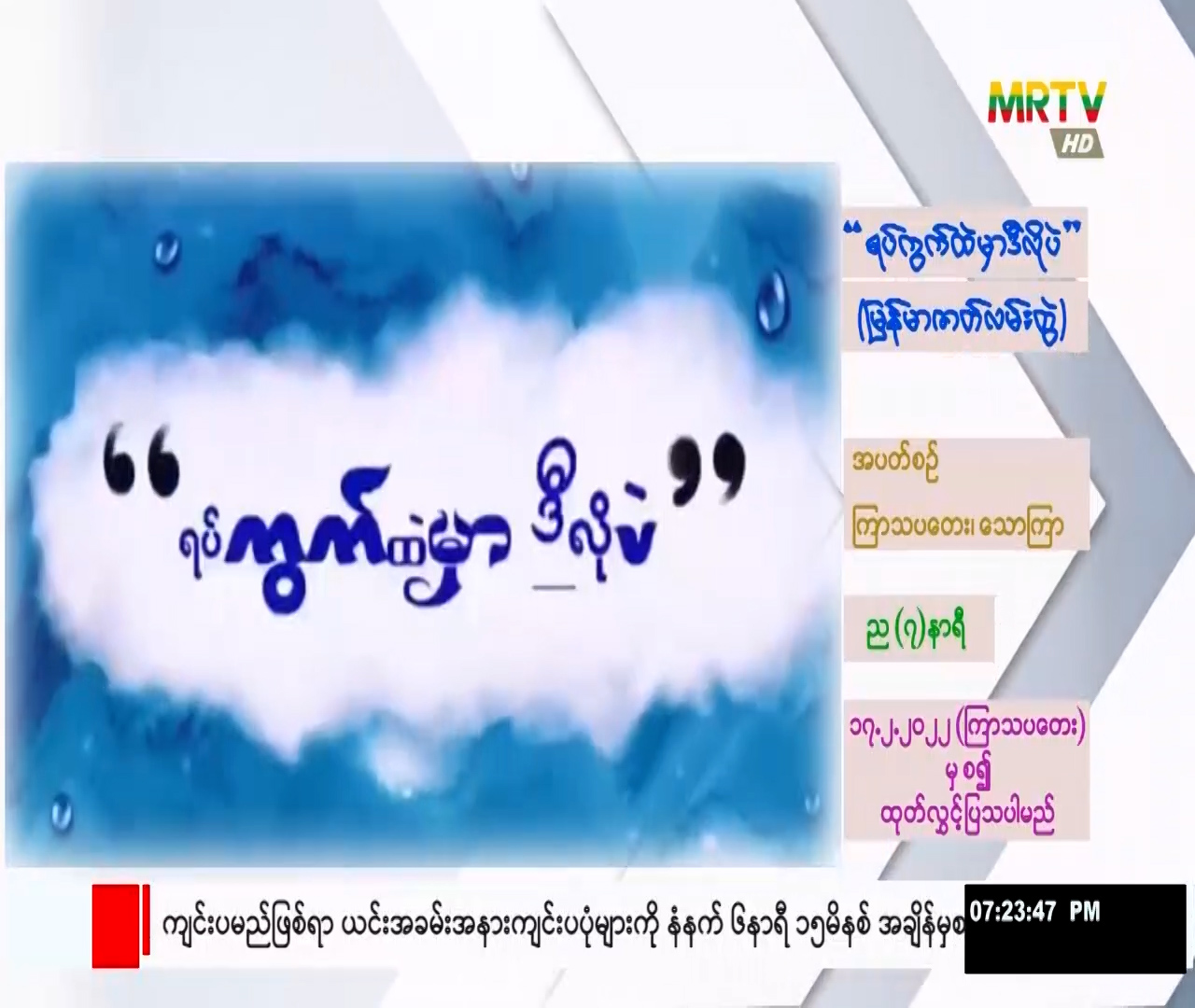"ရပ်ကွက်ထဲမှာဒီလိုပဲ" မြန်မာဇာတ်လမ်းတွဲကို ၁၇.၂.၂၀၂၂ မှစ၍ ထုတ်လွှင့်ပြသမည် Saturday, February 12, 2022 Saturday, February 12, 2022