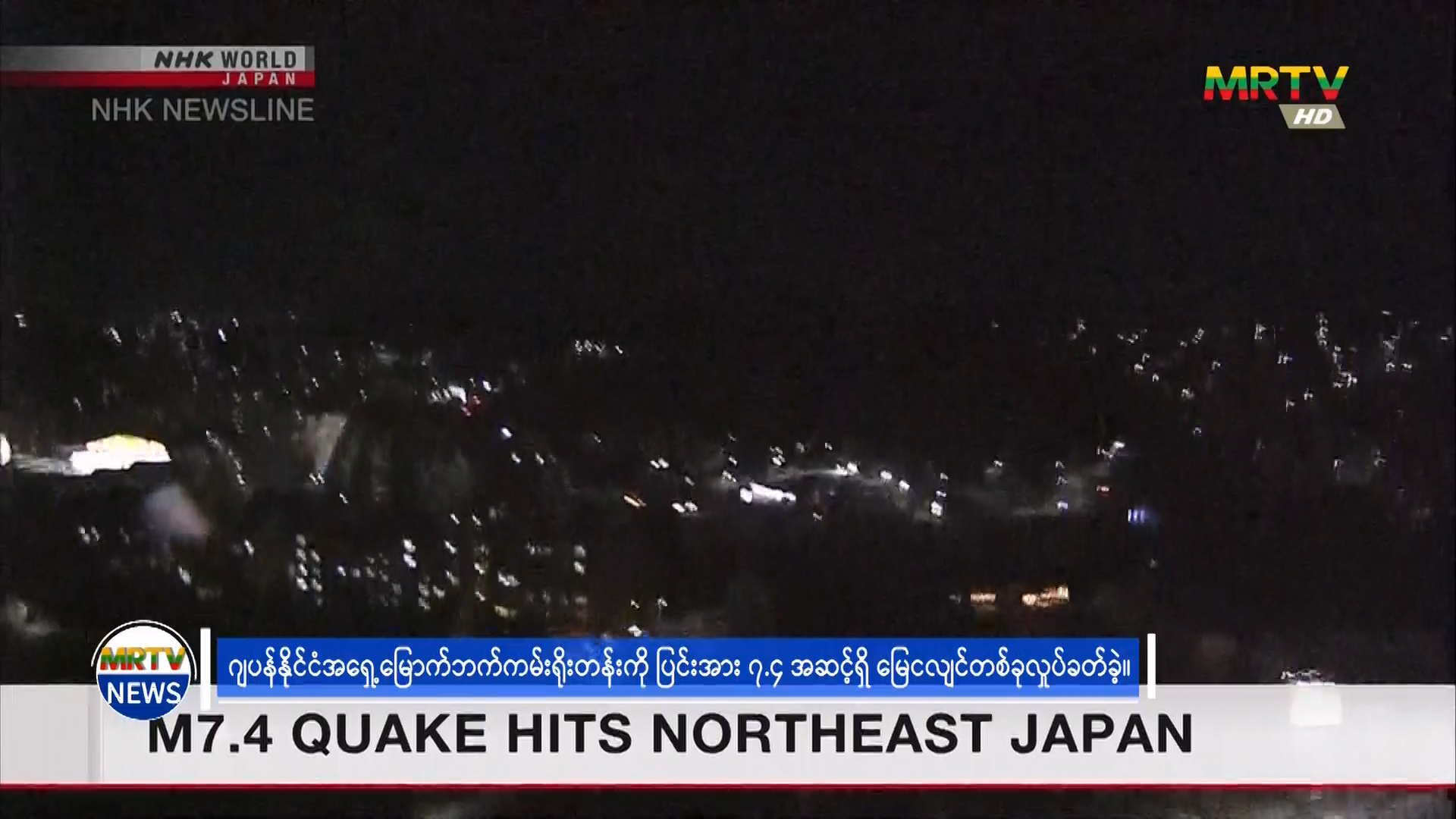 ဂျပန်နိုင်ငံအရှေ့မြောက်ဘက် ကမ်းရိုးတန်းကို ပြင်းအား ၇.၄ အဆင့်ရှိ မြေငလျင်တစ်ခုလှုပ်ခတ်ခဲ့ Thursday, March 17, 2022 Thursday, March 17, 2022