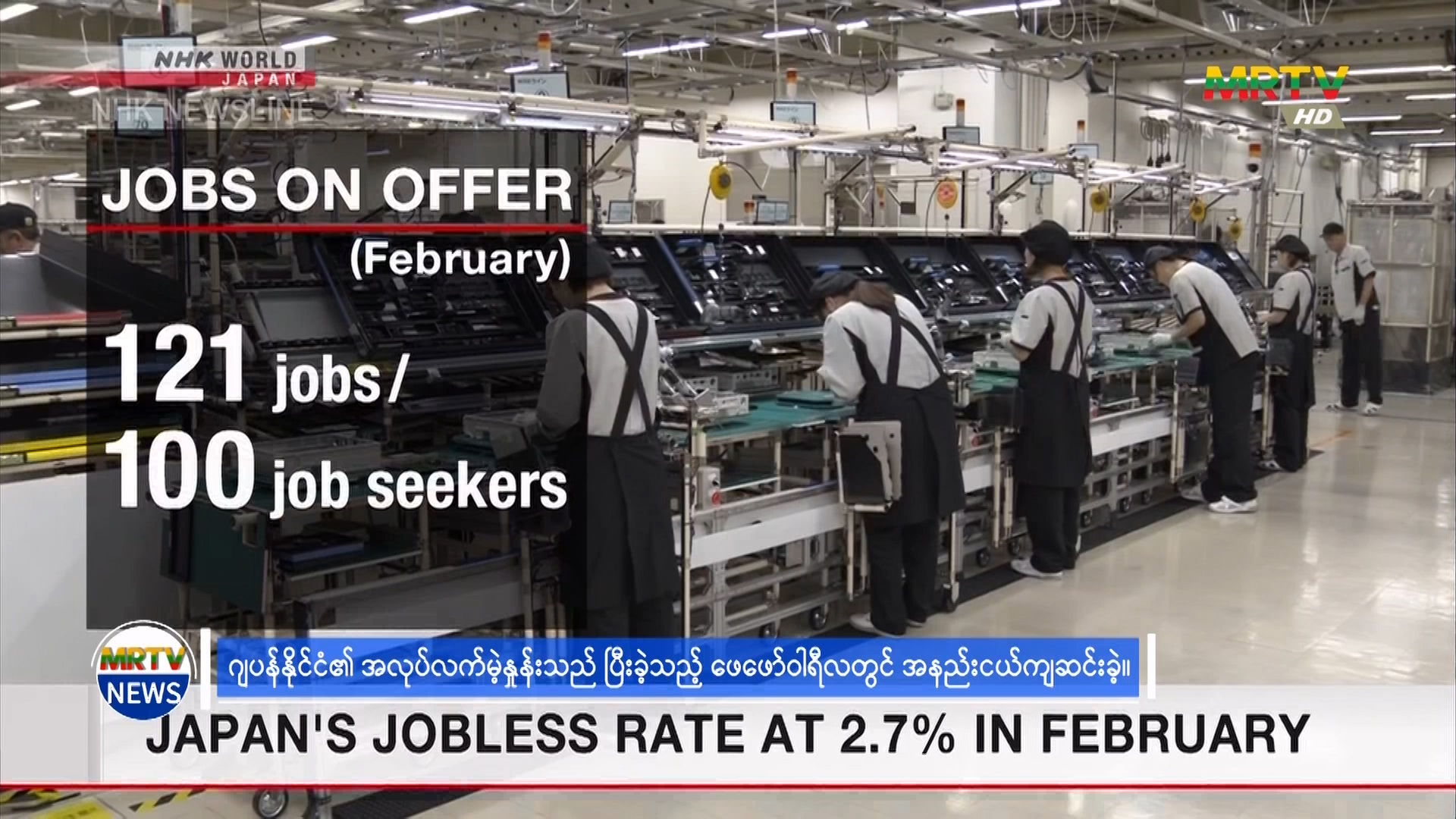 ဂျပန်နိုင်ငံ၏ အလုပ်လက်မဲ့နှုန်းသည် ပြီးခဲ့သည့် ဖေဖော်ဝါရီတွင် အနည်းငယ် ကျဆင်းခဲ့ Wednesday, March 30, 2022 Wednesday, March 30, 2022