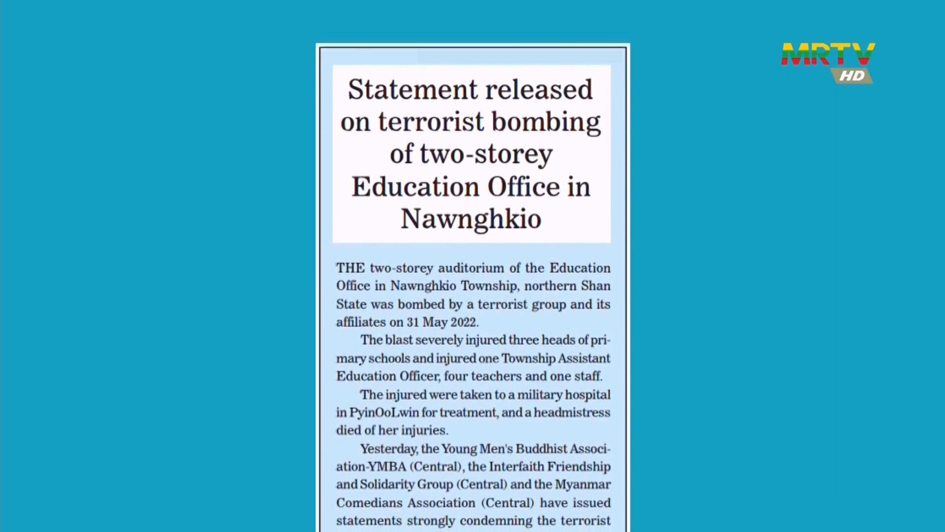 Statement released to condemn the terrorist acts
