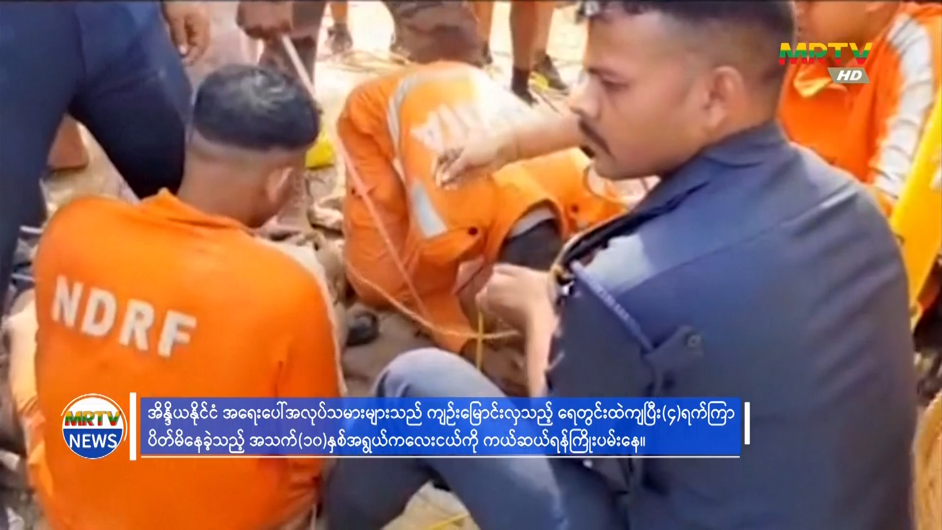 အိန္ဒိယနိုင်ငံ အရေးပေါ်လုပ်သား များသည် ကျဉ်းမြောင်းလှသည့် ရေတွင်းထဲကျပြီး (၄)ရက်ကြာ ပိတ်မိနေခဲ့ သည့် အသက်(၁၀)နှစ်အရွယ် ကလေးငယ်ကို ကယ်ဆယ်ဖို့ကြိုးပမ်းနေ Wednesday, June 15, 2022 Wednesday, June 15, 2022